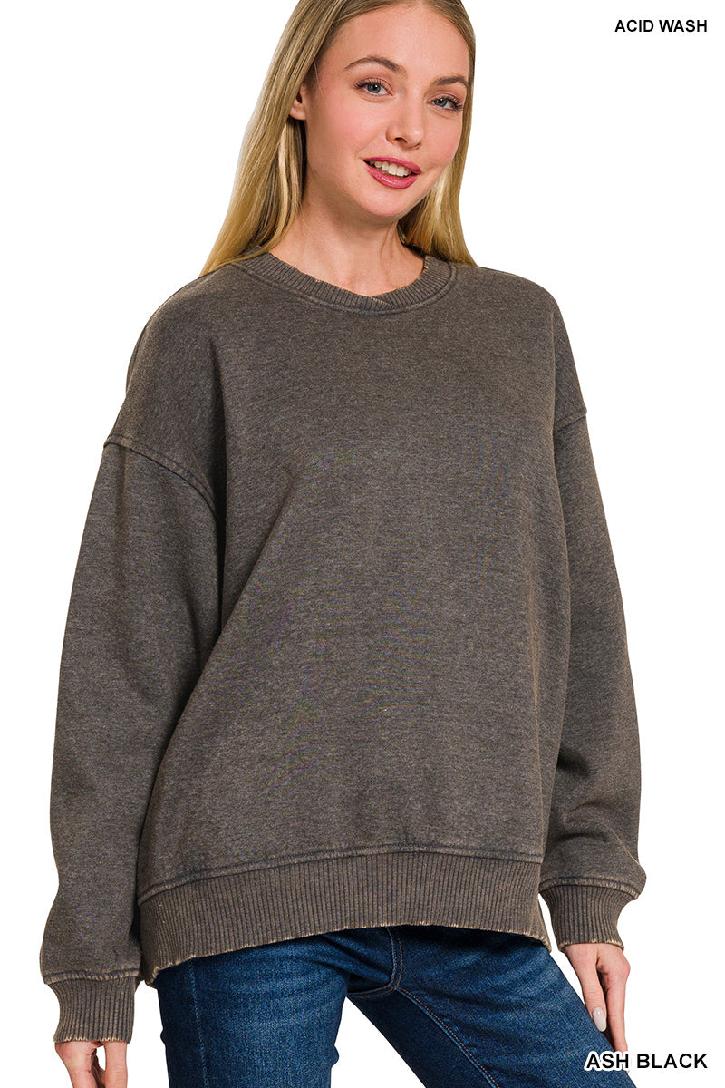 The Blackout Comfort Crew is an acid wash fleece pullover featuring a roomy oversized fit, statement balloon sleeves, and a flattering overlap neckband. Crafted from a super soft blend of 60% cotton and 40% polyester, it’s cozy without feeling bulky and designed for all-day comfort. Each piece is uniquely dyed for that perfectly worn-in look, making every pullover one-of-a-kind.