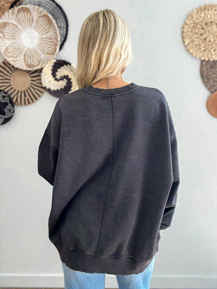 This is the grab-and-go pullover that works for lounging, layering, or adding effortless edge to your outfit. With its comfy oversized fit and washed-in feel, it’s made for cozy days and casual nights.