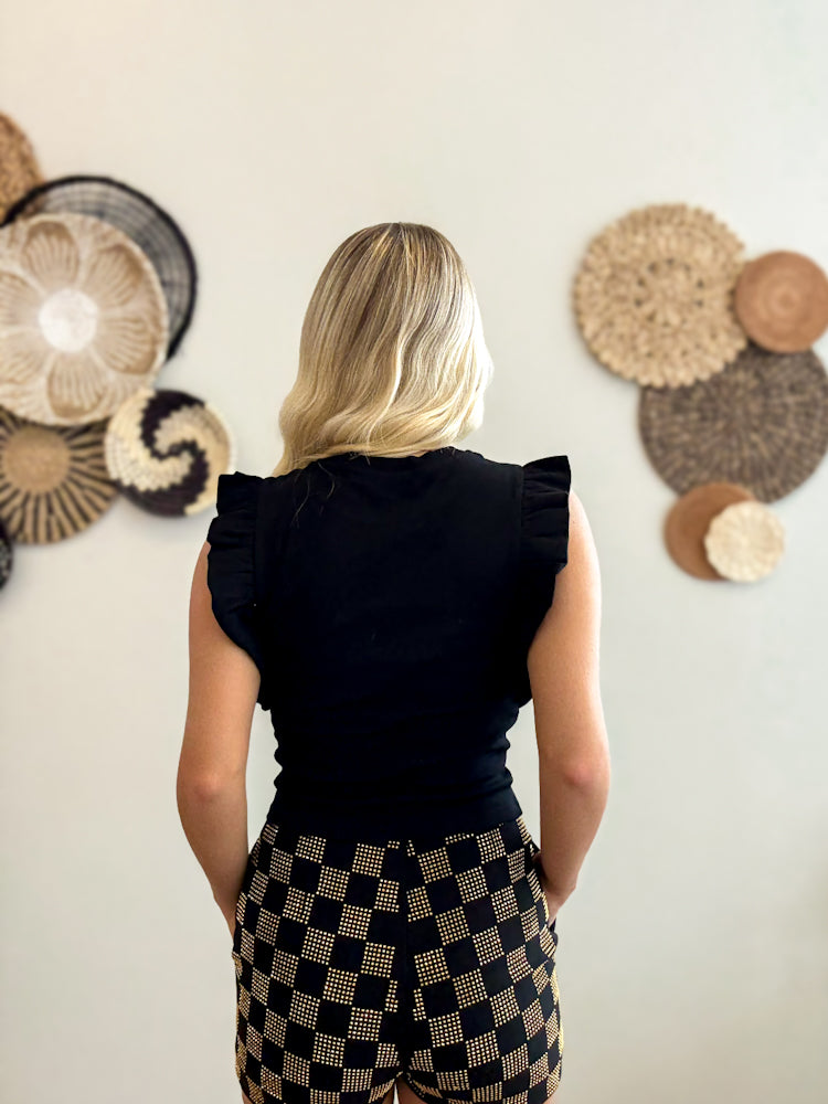 Meet your new go-to tank that’s equal parts chic and versatile. Designed for the woman who loves to add a little edge to her everyday basics, this black sleeveless top is anything but simple.